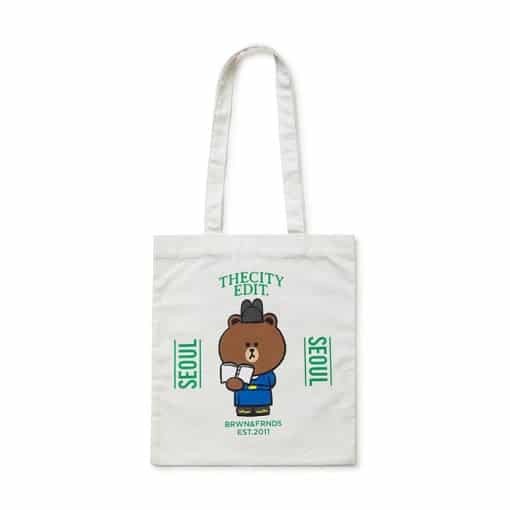 E per passeggiare con stile per le vie di Seoul ecco la tua nuova borsa eco-friendly con stampato BROWN & FRIENDS.