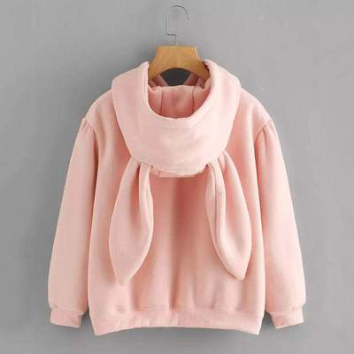- 1 CUTE RABBIT EMBROIDERED LONG SLEEVE BUNNY EARS HOODIE