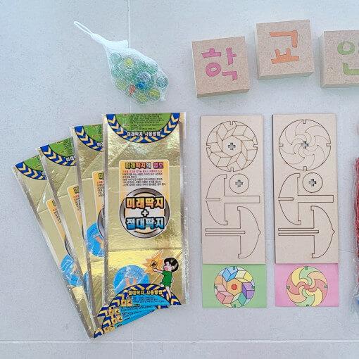 - Yutnori, 2 Hit the Top, Tickle, Jegi Kick, Air Play, Thread Knitting, Biseokchigi, Gonunori, Marbles